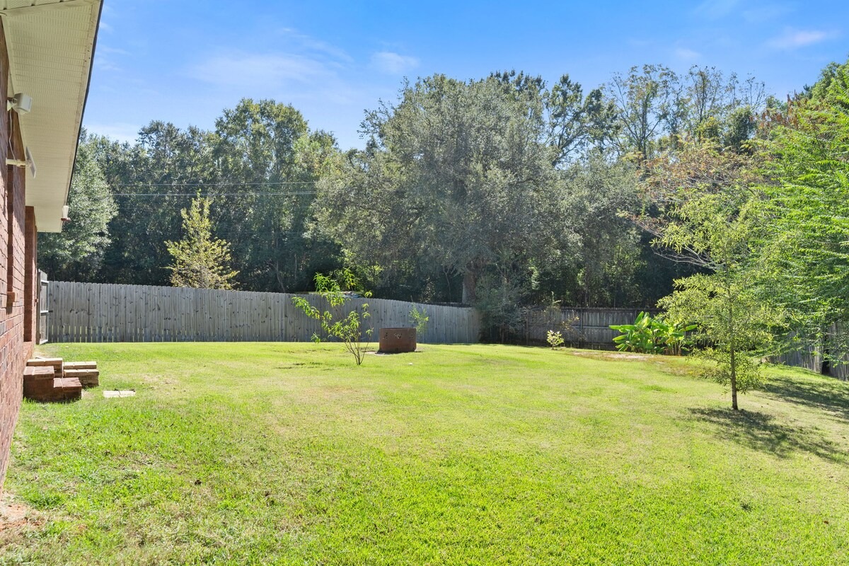 Welcome to your peaceful retreat in Daphne, AL! This cozy, fully furnished home offers comfort and convenience with fast WiFi, a fully stocked kitchen, and a spacious yard. Nestled in a quiet neighborhood, you’re just minutes from Fairhope, local shops, and beautiful Gulf Coast beaches. Perfect for families, couples, or business travelers!